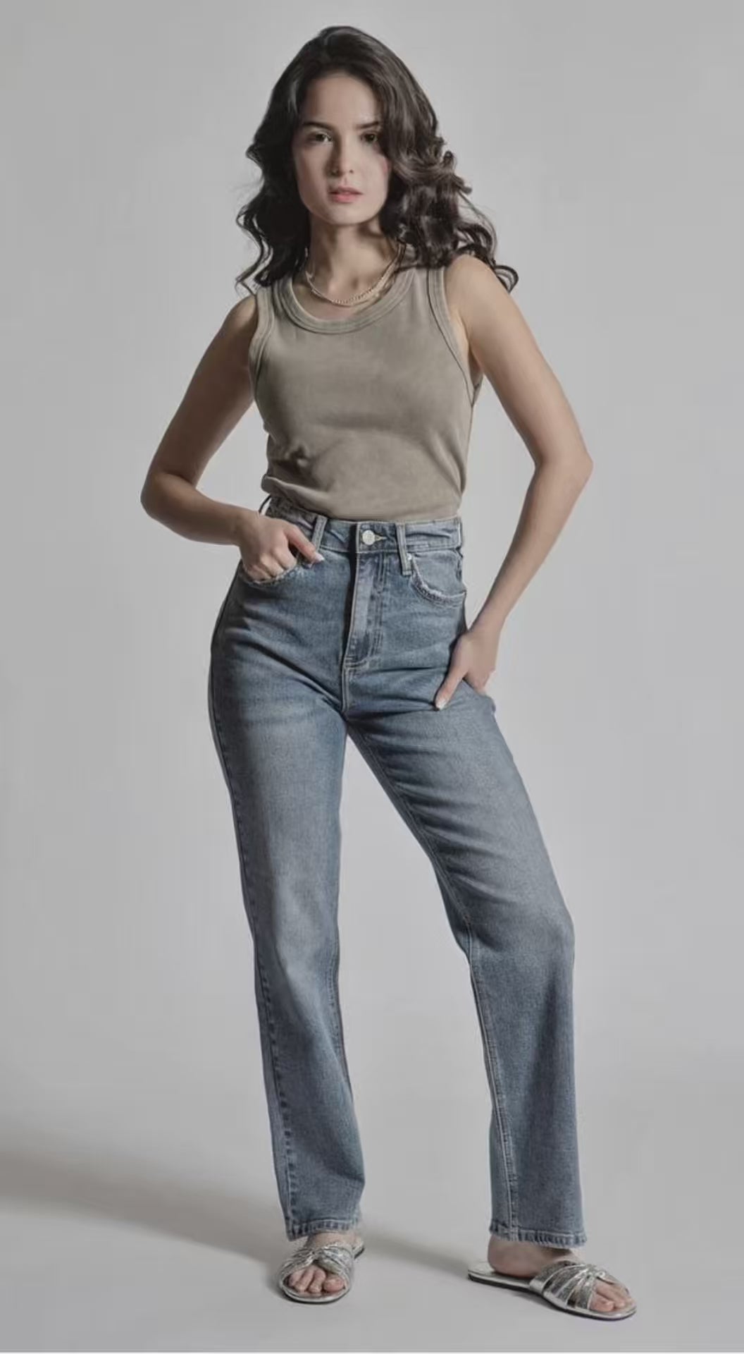 Pantalón de Mezclilla Corte Wide Leg Brillos DXD0447